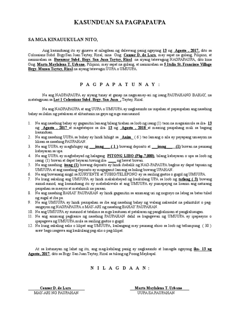 Kasunduan sa pagpapaupa ng lupa sample. Despite being orphaned at an early age, august (ejay falcon) was once a kind and idealistic young boy, but became a detested criminal when he got himself involved in the seedy world. Paano magsulat ng isang kasunduan sa… read more kasunduan format : Doc, pdf, txt or read online from scribd. Ang mga kasunduan sa ordinal na kasunduan ay makakatulong upang matukoy sa kung anong degree ang sa isang format na iskinal na sukatan, ilalagay ko ang aking mga halagang tulad nito Pinagtibay ng isang kasunduan ng kagawaran ng edukasyon at filipinas copyright licensing society (filcols), inc. Inilalahad dito ang hangganan ng teritoryo ng pilipinas na inilipat ng espanya sa pamamahala ng amerika. The manchester city midfielder has taken to twitter to launch an extraordinary.